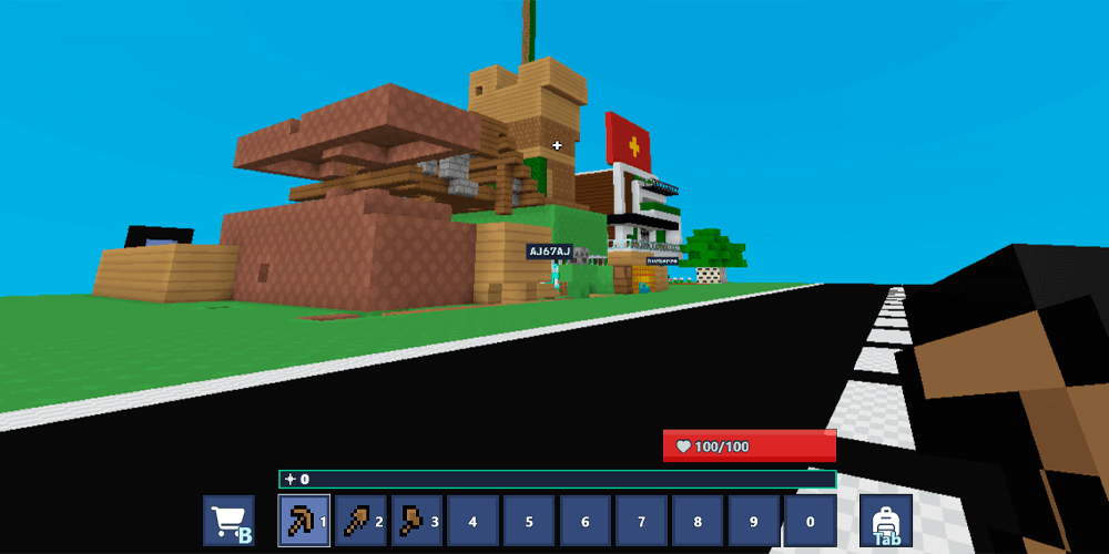 Getting into Bloxd.io is effortless, but mastering its controls takes a short adjustment period. Movement runs on WASD, jumping on Space, sprinting on Shift, and crouching on Z or C. You place blocks with right-click, break them with left-click, and scroll through your inventory with the mouse wheel. Pressing P toggles between first-person and third-person camera, a small trick that turns out to be surprisingly useful. Third person lets you see how close a pursuer is without turning around, or evaluate whether your Hide and Seek spot actually looks convincing from the outside.