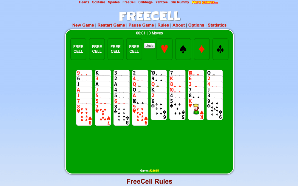 Cardgames.io is a huge collection of board games. The main advantage of the site lies in the simple navigation and user-friendly gaming process. To start playing, the user does not need to sign up. It is enough to go to the main page, choose your favorite game, and launch it.