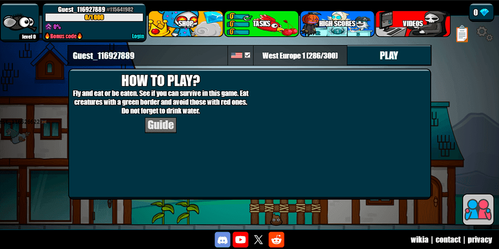 EvoWorld.io is a browser-based multiplayer survival game that drops players into a living, breathing ecosystem where the only goal is to eat, grow, and not get eaten. Originally released under the name FlyOrDie.io back in April 2018, the game was rebranded by developer Pixel Voices but kept everything that made it popular in the first place. The premise is deceptively simple: you start as a tiny, defenseless fly and work your way up the food chain by consuming smaller creatures and dodging bigger ones. What sounds like a casual time-killer quickly reveals itself to be a surprisingly tense survival experience, largely because every other creature on the screen is controlled by a real person with the same ambitions.