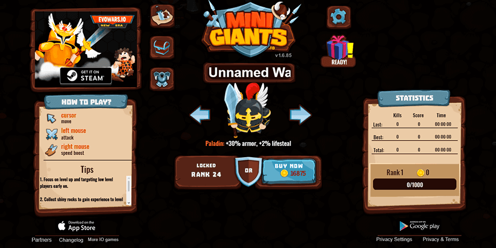 MiniGiants.io belongs to that particular breed of browser game that hooks you before you even realize what happened. Developed by Night Steed Games, it is a top-down multiplayer deathmatch that merges the instant accessibility of the .io genre with a surprisingly robust layer of RPG progression. The pitch is simple and timeless: you start as a tiny, vulnerable fighter in a crowded arena, gather glowing orbs to grow, dodge anyone bigger than you, and gradually transform into a screen-filling menace that sends smaller players scrambling. What makes it worth talking about is how well it marries that chaotic, pick-up-and-play energy with systems that actually reward you for coming back. The growth loop is the star here, and most of what follows examines whether the game delivers on its promise of satisfying escalation.
