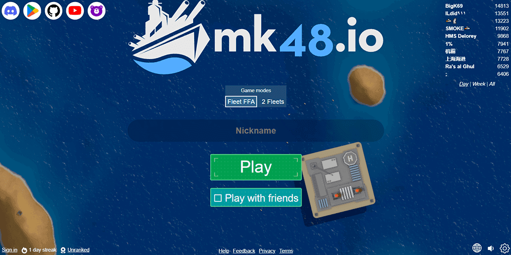 There is no shortage of io games competing for your attention in a browser tab, but very few of them ask you to think before you shoot. Mk48.io, developed by Softbear Studios, is one of those rare exceptions. On the surface it follows a familiar formula: you spawn as a small vessel, gather floating crates, sink other players, and grow stronger with every level. Peel back that layer, though, and you find a multiplayer naval combat game with a surprisingly tactical identity. Where most browser arena titles reward twitchy reflexes and constant aggression, Mk48.io favors positioning, timing, and deliberate ship selection, giving it a pace and personality that set it apart from the crowd.