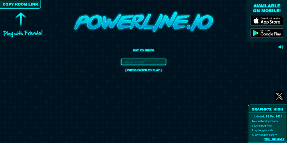 The classic Snake formula has been reimagined countless times over the years, but few versions capture the spirit of the original while adding genuine competitive depth quite like Powerline.io. Developed by Profusion Studios and published by Andre Almeida back in October 2017, this multiplayer .io game drops players into a glowing neon arena where they control a stream of electricity, consume energy bits to grow longer, and attempt to eliminate rivals by forcing them into collisions. The controls are dead simple — WASD or the arrow keys let you steer in four directions at 90-degree angles — and within seconds of connecting to a server, you're already weaving through a field of opponents, chasing the top spot on the leaderboard. It's fast, it's accessible, and it hooks you almost immediately.