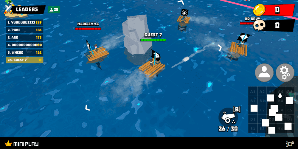 The controls are as clean as you would expect from the genre. Steer your ship, aim your cannons, fire. That is the entire input vocabulary, and it takes about five seconds to internalize. But the moment you start moving, you notice the game has a subtle physical personality that elevates the experience above simple point-and-click combat. Your ship drifts. It carries momentum through turns. Overcorrect your steering and you overshoot your target. Tunnel-vision on an enemy and you might glide straight into someone else's cannon line without realizing it. This small layer of inertia transforms positioning into a genuine skill. Good players circle instead of charging, maintain escape routes before they open fire, and treat every engagement like a dance on water rather than a head-on collision. Shooting rewards prediction over reaction, too. Targets are constantly moving across a slippery surface, so landing consistent hits means learning to lead your shots, aiming slightly ahead of where an opponent is heading rather than where they sit right now.