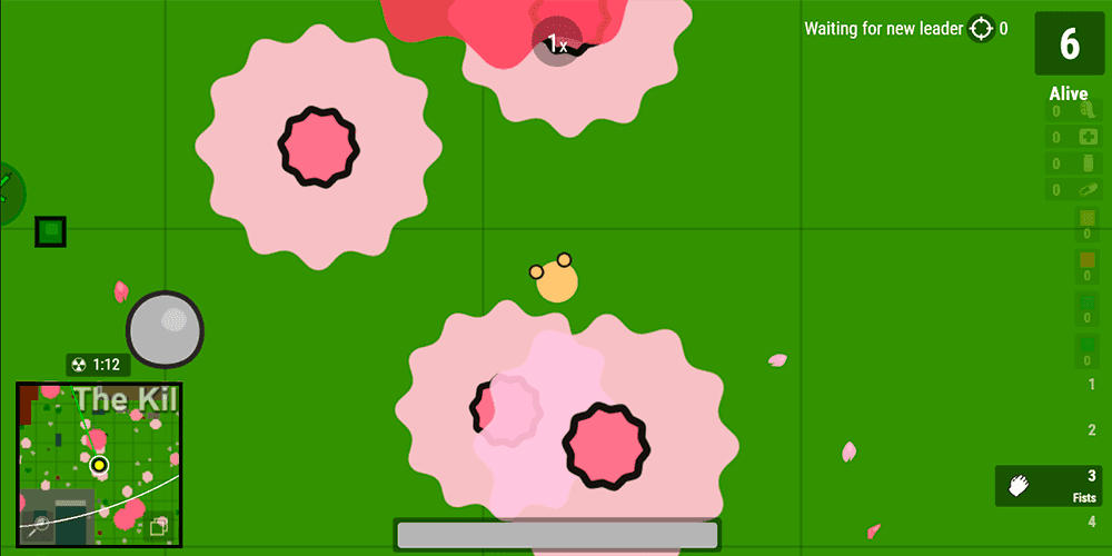 What catches you off guard is how well the game builds suspense despite its extremely simple 2D top-down visuals. Your character is little more than a circle with two smaller circles for fists. Buildings are flat geometric shapes. Trees are green blobs. None of it looks like it should make your heart rate climb. But the first time the circle squeezes down to a tiny patch of ground and you know one other player is somewhere nearby, the tension is undeniably real.