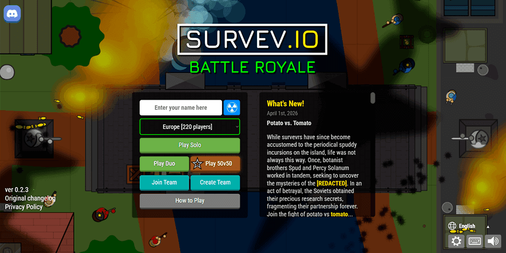 There is no shortage of battle royale games demanding your time, your hard drive space, and your patience. Surviv.io asks for none of those things. This free-to-play, browser-based take on the genre strips the last-player-standing formula down to its barest essentials and somehow keeps the tension intact. The setup is exactly what veterans of PUBG or Fortnite already know: a group of players drops onto a map, a lethal circle closes in, and everyone scrambles for weapons and gear until only one is left standing. The difference is that you click a link, the page loads, and you are playing within seconds. No lobby. No loading screen. No waiting on a plane or a bus or a countdown timer. You are simply there, fists out, hunting for your first gun.