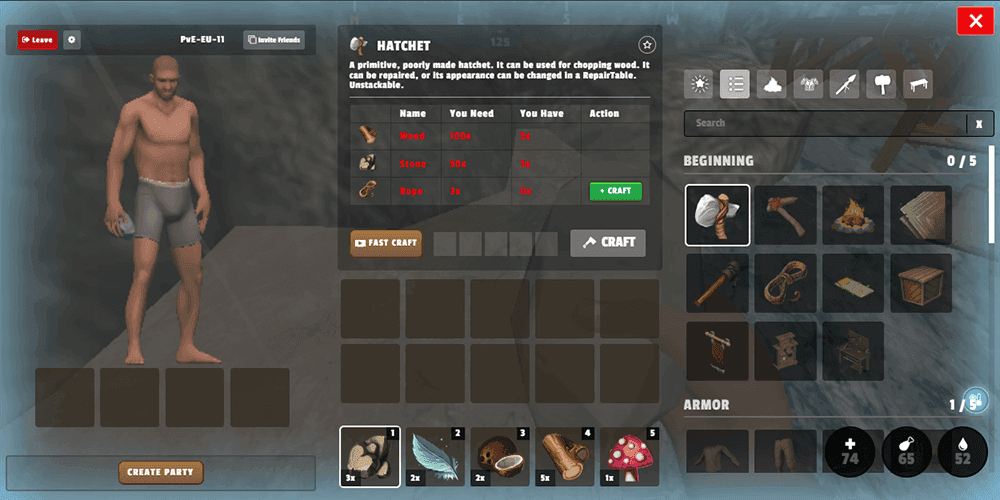The island may be vast, but not all land is created equal. High-value areas rich in resources become flashpoints, with players and clans fortifying them behind walls, spike traps, and layered defenses. The clan and party systems let groups coordinate raids and resource runs, turning pockets of the map into contested territories where diplomacy and brute force coexist uneasily. Many players skip farming entirely and treat raiding as their primary resource strategy — breaking into poorly defended bases is often faster and more rewarding than harvesting raw materials from the ground.