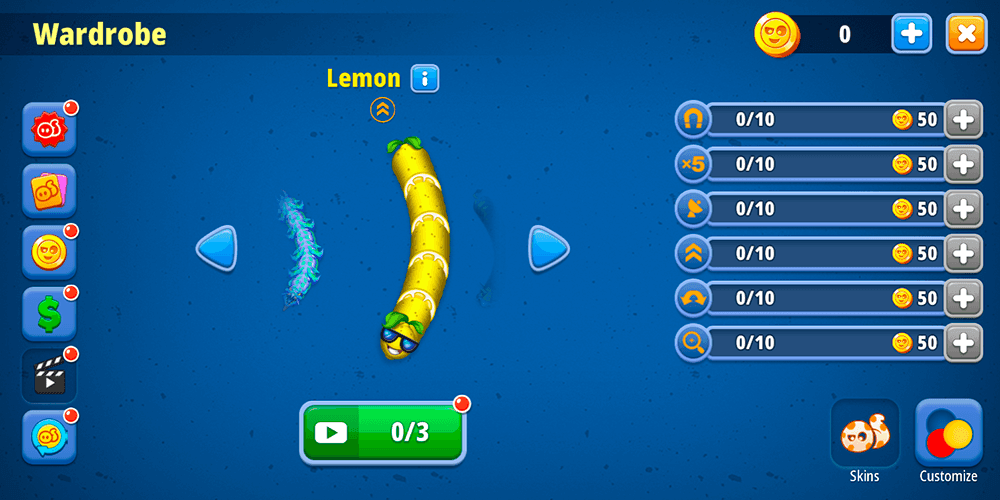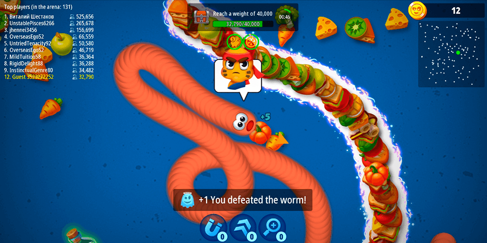 The core gameplay loop is elegantly straightforward. You guide your worm around the arena, collecting scattered food and grabbing power-ups to accelerate your growth. The real thrill comes from other players. Collide head-on with a rival and you die instantly, losing everything and starting from scratch. But if you manage to outmaneuver an opponent, encircling them until they have nowhere to go, you steal all of their accumulated mass. It is a satisfying reversal that gives even a small worm a fighting chance against a giant. The game formally recognizes different playstyles — fighter, trickster, and builder — which adds a thin layer of tactical identity to what is otherwise a very instinct-driven experience. Progression systems help maintain interest beyond individual rounds. Unlockable skins, wardrobe customization options, themed limited-time events, coin rewards, and the ever-present pull of climbing the leaderboard give players reasons to return. The controls are minimal, the presentation is deliberately simple, and the overall vibe lands somewhere between relaxing and competitive. Several players mention enjoying it as a go-to time-killer, and some appreciate the fact that it remains playable offline, though daily rewards and certain features require a connection.